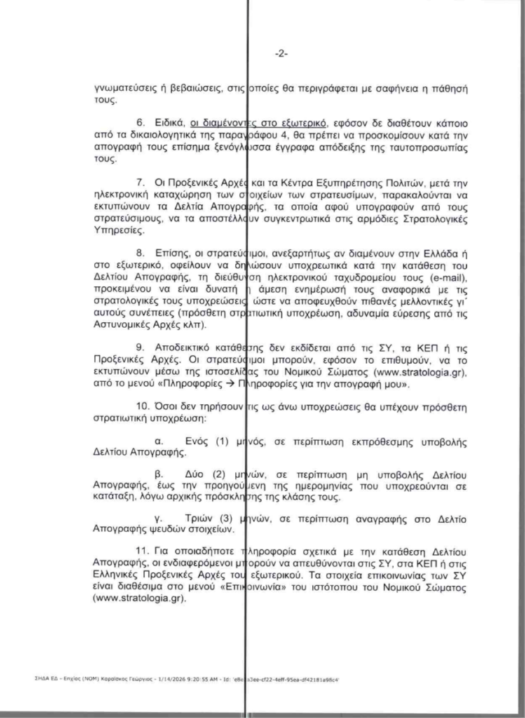 Κατάθεση δελτίου απογραφής στρατέυσιμων κλάσης 2029 & 2030