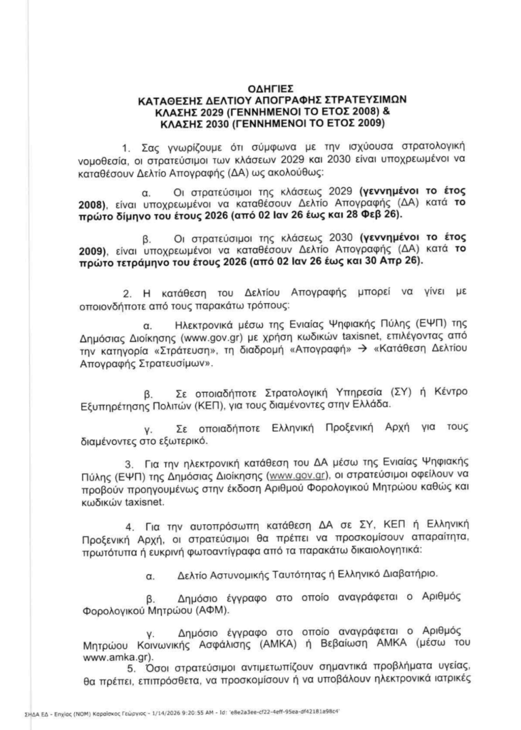 ΟΔΗΓΙΕΣ ΚΑΤΑΘΕΣΗΣ ΔΕΛΤΙΟΥ ΑΠΟΓΡΑΦΗΣ ΣΤΡΑΤΕΥΣΙΜΩΝ